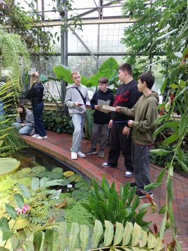Am 27.09. und 02.10. besuchten die Klassen 8b, 8c und 8d die Grüne Schule des Botanischen Gartens Oldenburg. Im ungewohnt warmen und feuchten Tropenhaus wurden typische Nutzpflanzen der tropischen Zone gesucht und gefunden. Wir wissen jetzt, wo der Pfeffer wächst, dass die Vanille rankt, der Kaffeestrauch Kirschen produziert und Reis ein Gras ist.
